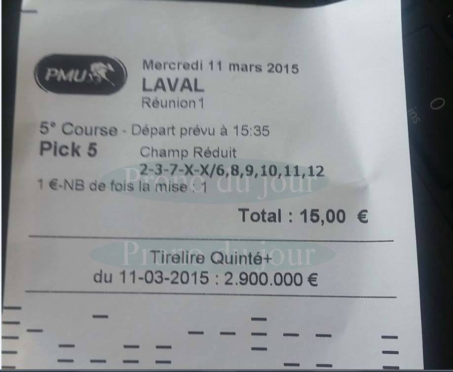 mars 2015, pick 5 à 1 600 €