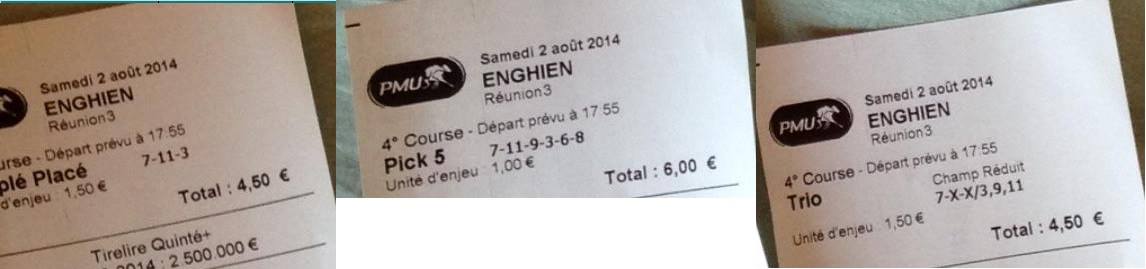 Mise : 15 € - Gains : 275,60 € - Bénéf : 260,60 €