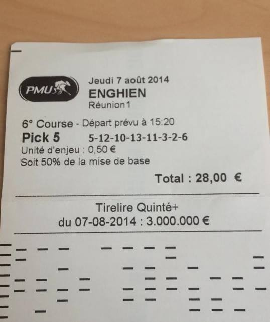 Pick 5 à 423,50 € jouer à 50 % soit 211,75 € de gains