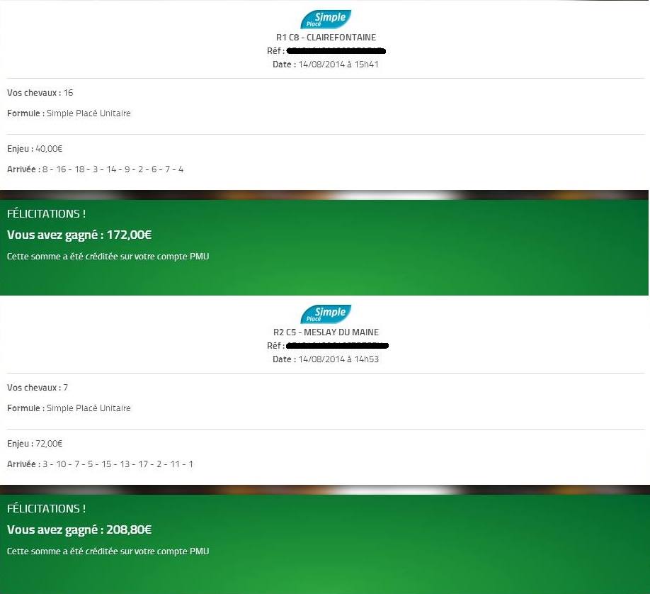 268,80 € de bénéfice sur deux paris !